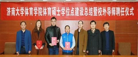 体育硕士学位点建设总结暨校外导师聘任仪式于第五学术报告厅成功召开,山东省小球管理中心主任修振涛、济南第二十中学副校长朱宁刚,济南第二十中学体育教研组长赵永娟三位校外硕士生导师,济南大学研究生院、发展规划与学科建设处、下注平台
