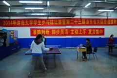 与乒乓球协会于2014年4月12日,在图书馆下的乒乓球馆内联合举办了济南大学学生乒乓球比赛暨第二十三届山东省大运会选拔赛。