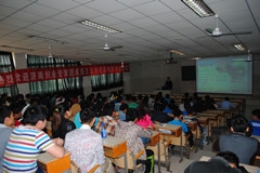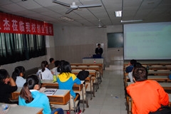 在2教204举办大学生创业指导讲座,由济南市创业指导专家团成员王立杰主讲。