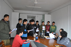 下午两点,毕业论文答辩正式开始。 此次开题答辩采用指导教师、学生分组进行开题答辩的方式,由指导教师组成的论文开题答辩小组分别负责小组内所有学生进行开题答辩。首先由每个学生对自己论文开题报告进行简介和论文撰写可行性分析,之后答辩组指导老师针对学生们在开题报告和答辩中所表露的问题,逐一指出并与学生们进行研讨。另外,对于毕业论文的进度安排、相关要求及撰写毕业论文需要注意的基本环节等问题,指导老师们都一一作出了详尽的说明。