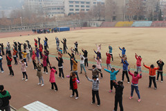 本学期《大学体育》课程以身体素质练习和基本运动技能教学为主,在课堂教学中教授篮球、排球、田径项目的基本技术。课程还安排了相关体育基本理论的教学,讲授体育与健康、体育保健与运动处方、营养与健康的基本理论知识,使学生能从所学知识、技能中掌握自主锻炼、自我保健的基本方法,以理论指导体育锻炼,培养自主锻炼和自我保健的能力,建立起健康第一、终身体育的理念。学期末通过第九套广播体操和800米的考核,检验学生的掌握情况。在实行改革以来,操场上更活跃了,同学们参与体育锻炼的积极性更高了。在最后的考核中,我们的记者了解到,公体课改革使同学们的体育观念有所改变,不再是“怕运动”,“懒得运动”,而是“想运动”,“喜欢运动”。在整个考核过程中,参加考试的同学始终面带微笑,信心满满,这种改变与公体课的改革关系密切。