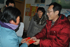 刚开始,王同学的母亲有点拘谨,随着聊的越来越深入就逐渐放开了,她连连感叹:“多亏了国家和学校,不然凭我自己的能力是不可能供孩子读完大学的。”在谈话中,我们注意到,王同学的母亲一点都不悲观,对未来充满了信心。辅导员李春海老师感叹:“小王大概是遗传了您这种乐观的天性,在学校里样样争先,表现优秀。”说起儿子王妈妈是一脸自豪,她说亲戚邻居都知道儿子考上了大学,学习好,还懂事,每周都往家打电话保平安,放假在家更是恨不得把母亲所有的活都揽过来。临别,家访小组送上了慰问品和慰问金。