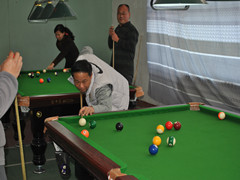 此次比赛的规则是分组单循环。将所有选手分为黑桃、红桃、梅花、方片四组。每组出线两人后进行单淘汰,并现场抽签确定组内成员。比赛中,选手们的球风一张一弛彰显绅士风范,一动一静尽显王者风采,他们精湛的球技得到淋漓尽致的表现。随着比赛越来越激烈,选手们的状态也越来越好。华丽的球姿、精湛的球技令现场观众不时发出阵阵喝彩。他们专注的表情、恰好的力道、精确的走位、严密的防守体现出选手具有很高的水平。在单淘汰环节,比赛逐渐推向高潮,现场气氛非常活跃。下午5点半比赛结束。裁判根据比赛规则选出前八位选手,李德生老师,李志伟老师,黄河老师,李繁荣老师,杨鹏老师,路平老师,徐义良老师,李春海老师,分别获得前八名。