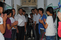 走访过程中,由自律会干部向大一新生介绍各位领导。领导们细心地走访了每一间新生宿舍,并亲切和同学们进行交谈。交谈中,杨院长十分关心新生报道后的生活问题,一一询问同学们吃住是否习惯、是否有缺少的东西。张书记和李老师分别作为新生社会体育和体育教育专业的辅导员,对新生也特别关心,并告诉大家有什么问题可以及时向老师反应,老师会尽全力为大家解决。此外,领导老师们还提醒同学们要注意公共环境卫生、保持宿舍整洁,不用违规电器,还要加强各方面的安全意识。新生对领导的走访都比较紧张和激动,但是经过交谈以后,大家一致觉得领导们平易近人,让每个人都在学校这个还比较陌生的环境中感受到了家的温暖。