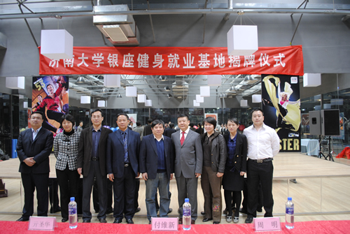 毕业生就业基地、青年就业创业见习基地揭牌仪式在山东省银座健身发展有限公司举行。出席此次揭牌仪式的有学院党委书记周明、学院院长杨磊、学院党委副书记、副院长张良红、学院副院长亓圣华、学院学办主任、团委书记李春海、山东银座健身发展有限公司总经理付维新、市场营销部总监王仁磊、综合管理部总监赵霞等。
