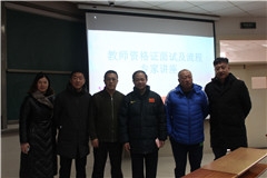 杨磊院长主持,邀请了李圣源、朱宁刚、张宇三位济南市优秀教师与会开讲,杨磊院长首先对李圣源、朱宁刚、张宇三位优秀教师进行了介绍,继而对通过教师资格证笔试的同学们表示了由衷的祝贺,并要求同学们努力学习,提升自我,争取面试过关,早日考取教师资格证,体育教育系主任刘新宇、2016级3、4、5班班主任时传霞参加会议。