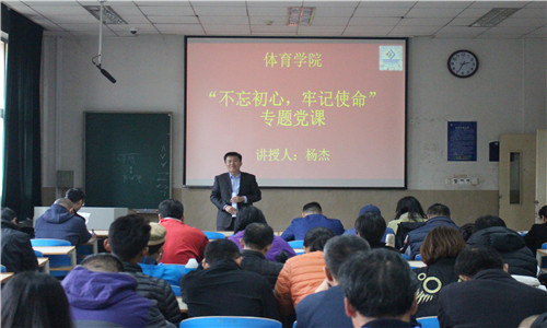 在一教105教室开展“不忘初心、牢记使命”主题教育专题党课,党委书记杨杰作了题为《坚定四个自信,做四有好老师》的报告。学院党政班子、各系部负责人、在职教工党员、教职工代表等60余人共同参加。