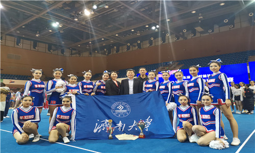 党委书记杨杰为领队、教练员戴静及14名参赛队员组成的济南大学健美操队参加了此次赛事。获得普通院校甲组啦啦操团体赛第一名;公开青年丙组集体技巧自选动作第一名、普通院校组女子单人操第一名、技巧啦啦操自选动作第一名、爵士啦啦操自选动作第二名、有氧舞蹈三级第四名等优异成绩,戴静老师获得全国啦啦操竞赛“优秀教练员”荣誉称号。