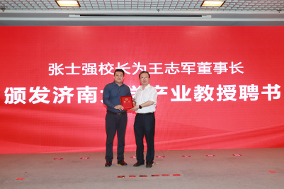 仪式上,张士强校长为王志军董事长颁发了济南大学产业教授聘书,王志军董事长为体育下注平台