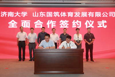 7月21日,济南大学与山东国筑体育发展有限公司全面合作签约仪式在济南大学举行。济南市市中区教体局党组成员、市中区体育事业发展中心主任韩明轩,山东国筑体育发展有限公司董事长王志军,山东国筑体育发展有限公司执行总裁都振达,山东国筑体育发展有限公司常务副总裁于海龙,济南大学校长张士强,济南大学党委副书记王玉华,学校合作发展处、下注平台