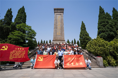 学院党委书记杨杰带领同志们在革命烈士纪念碑前重温入党誓词,并带领大家合唱《没有共产党就没有新中国》,在坚定的誓言和嘹亮的歌声中体悟初心使命。杨书记用“党史如明灯,照亮前行之路;党史如号角,激发前进的动力;党史如清泉,洗涤我们的心灵”三句饱含深情的话语与大家共勉,并强调学好党史,才能不忘初心,不改初衷。