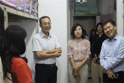 党委书记杨杰,院长亓圣华,副书记、副院长马杰,以及学办全体老师和新生班主任来到新生宿舍看望新生,为全体2021级新生送上中秋美好祝福。