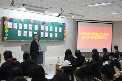在2教205召开学生安全教育暨宿舍管理表彰大会,济南大学党委学生工作部(处)武装部副部(处)长李荣光,下注平台