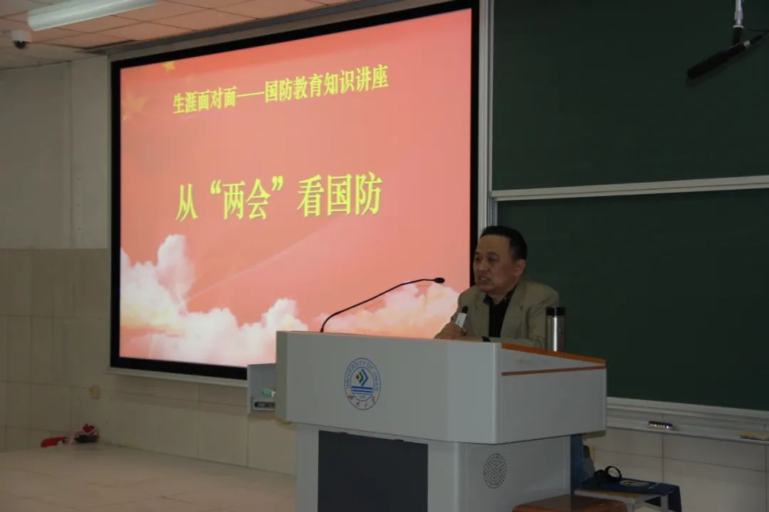 在2教104举办生涯面对面——国防教育知识讲座,本次讲座邀请到了山东省政协委员、原空军某部政治部副主任郝立伟大校为全院师生进行国防教育知识讲座,下注平台