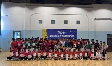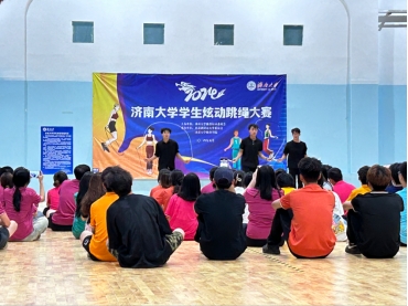 近日,济南大学学生炫动跳绳大赛在主校区羽毛球馆圆满落幕。学校党委常委、宣传部部长贾海宁,校党委学生工作部(处)副部(处)长马杰、体育学院院长亓圣华、学院党委副书记、副院长郭桂芬等出席活动并颁奖。