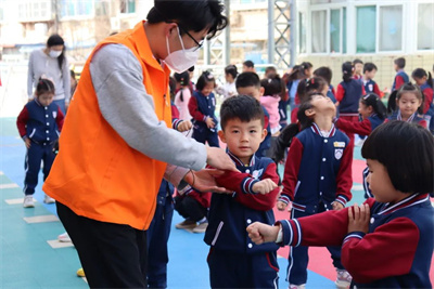 团委书记朱志乐带领“一缕阳光”青年志愿者协会走进济南大学附属幼儿园进行“非遗文化进校园”志愿服务活动。.