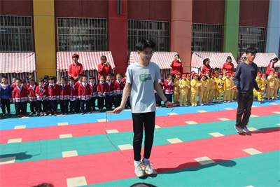 进入济南大学附属幼儿园后,幼儿园老师们热情的欢迎了志愿者们的到来,志愿者们为孩子们献上了精彩的舞狮表演。锣鼓喧天的音乐里,舞狮者随着鼓点快、慢、轻、重的节奏时时而跳起,时而站立,时而走向观众面前,还不停地点头“打招呼”。样子、动作都十分活泼可爱。小朋友频频伸出手来抚摸它们。有的孩子还把手伸进“狮子”的嘴巴里,与“狮子”欢乐互动。本次志愿服务活动不仅有着精彩的舞狮表演还有跳绳社团为孩子们带来的花样跳绳,跳绳可以增强孩子们强身健体的意识,提高了他们锻炼身体的积极性,强身健体的同时还能培养孩子们的坚强品质,塑造完美的人格。本次志愿者协会成员的耐心以及服务能力得到幼儿园老师们的好评,并赠送了小礼物给成员们以表感谢。