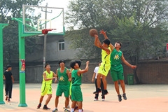 12点,当球空中的那一瞬间激烈的比赛才算正式开始。中锋的奋起一跃拉开比赛的帷幕并将比赛推向高潮。骄阳下的他们如同猛虎一般,在赛场上洒下汗水赛出风采。球场之外各个班级的拉拉队也在疯狂的呐喊着,每进一个球她们都会疯狂的交出心中那无比的兴奋跟喜悦。队员们在啦啦队的呐喊中也受到鼓励,表现的越发勇猛。直到一小时之后各个班级的比赛才陆续结束。