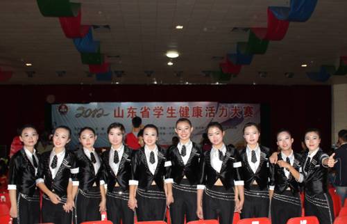 学生组成的我校健美操代表队,在2012山东省学生健康活力大赛中,在所参加的三个项目的比赛中战胜众多强队获得健身健美操—集体徒手赛冠军、健身健美操—集体器械赛第三名、啦啦队—舞蹈啦啦操第六名的优异成绩。董柔和刘丹丹同学获得“体育道德风尚奖”,苏文革、杨鹏获得“优秀指导教师奖”。