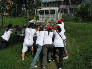 值得一提的是,在去往书画院的路上,志愿者们主动帮助当地司机推车,这种助人为乐的高尚品德值得学习。